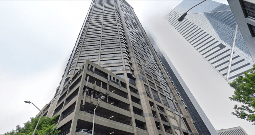 The actual building referenced is what used to be known as the AT&T Gateway Tower, now called the Seattle Municipal Tower.