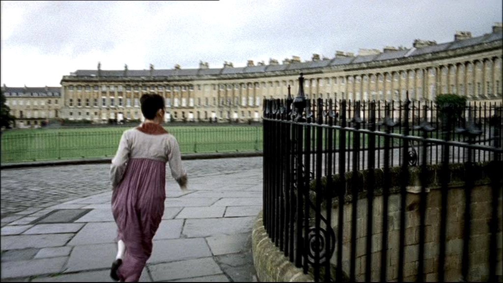 The last episode of Persuasion (TV movie), starring Sally Hawkins and Rupert Penry Jones, was filmed on location, in Bath, UK. The meeting between Captain Wentworth and Anne Elliot during the climax of the film was shot on the Royal Crescent in Bath.